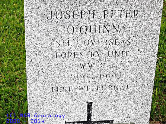 | Joseph Peter O'Quinn Newfoundland Overseas Forestry Unit WW II 1919 -1991 Lest We Forget |