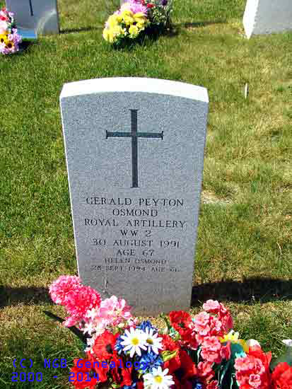 | Gerald Peyton Osmond Royal Artillery WW II 30 Aug 1991 Age 67 Helen Osmond 28 Sep 1994 Age 60? |