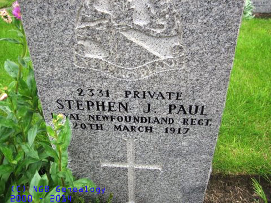 | Regimental # 2331 Stephen J. Paul Private - Royal Newfoundland Regiment 20 Mar 1917 |