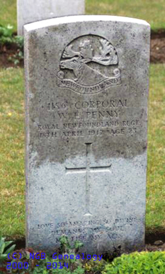 | 1156 Coporal W.E. Penny Royal Newfoundland Regiment 18 Apr 1917 Age 23 ~ Love So Amazing, So Divine Demands My Soul My Life, My All |