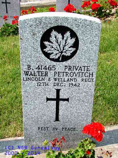 | B41465 Walter Petrovitch Private - Lincoln & Welland Regiment 12 Dec 1942 Rest In Peace |