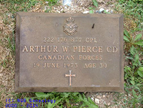 | 222 176 877 Corporal Arthur W. Pierce [C.D.] Canadian Forces 19 Jun 1973 Age 30 |
