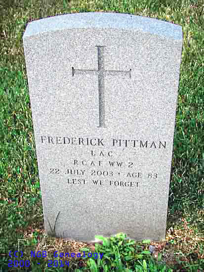| Frederick Pittman L.A.C. - R.C.A.F. WW II 22 Jul 2003 Age 83 Lest We Forget |
