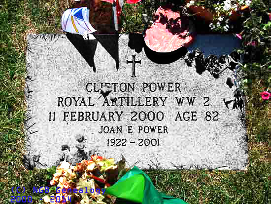 | Clifton Power Royal Artillery WW II 11 Feb 2000 Age 82 Joan E. Power 1922-2001 Age 79 |