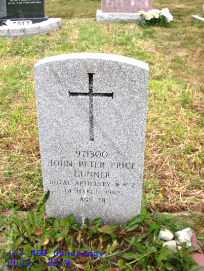 | 971300 John Peter Price Gunner Royal Artillery ~ WW II 14 Mar 1950 Age 78 |