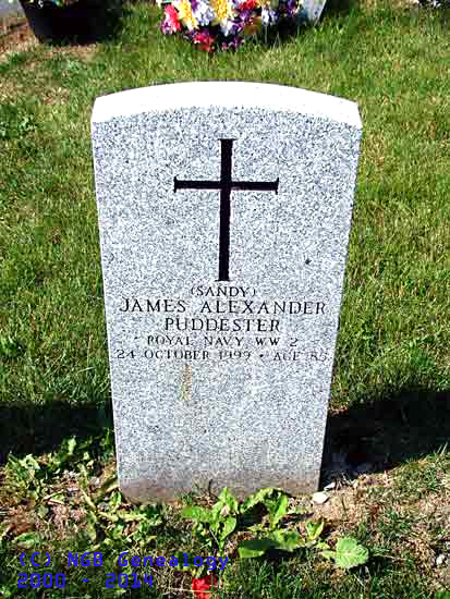 | (Sandy) James Alexander Puddester Royal Navy WW II 24 Oct 1999 Age 85 |