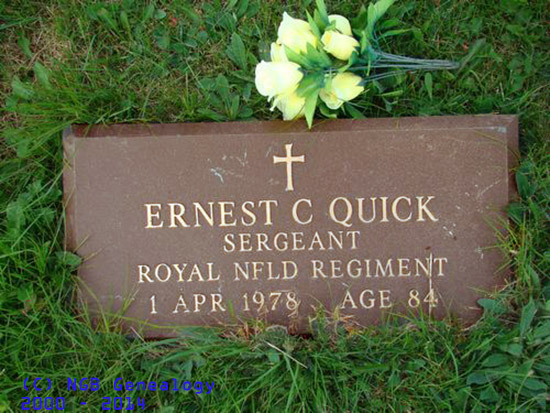 | Ernest C. Quick Sergeant Royal Newfoundland Regiment 1 Apr 1978 Age 84 |