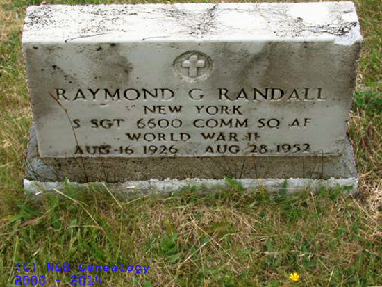 | Raymond G. Randall New York S/Sergeant ~ 6600 Comm Squadron ~ Air Force WW II 16 Aug 1926 ~ 28 Aug 1952 |