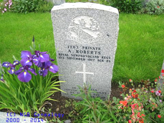 | Regimental # 1203 A. Roberts Private - Royal Newfoundland Regiment 1 Nov 1917 Age 24 |