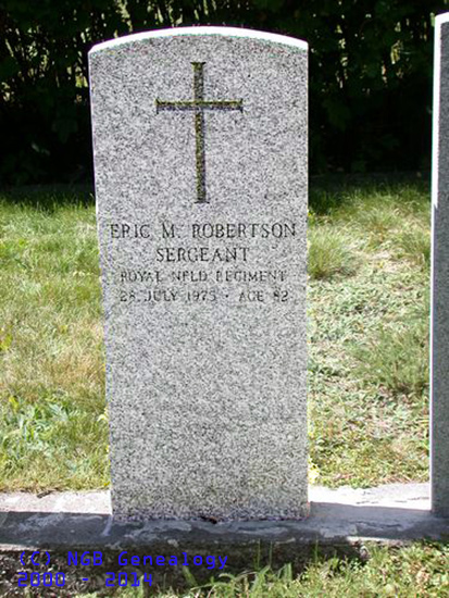 | Eric M. Robertson Sergeant Royal Newfoundland Regiment 28 July 1975 Age 82 |