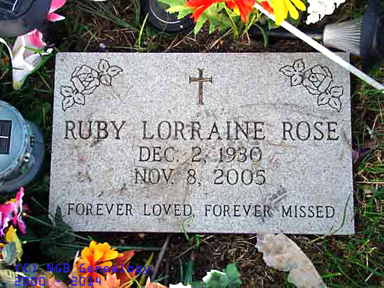 | Ruby Lorraine Rose 2 Dec 1930 - 8 Nov 2005 Age 75 Forever Loved - Forever Missed |