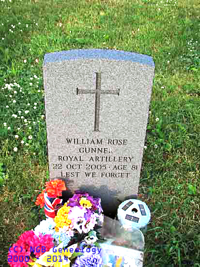 | William Rose Gunner - Royal Artillery 22 Oct 2005 Age 81 Lest We Forget |