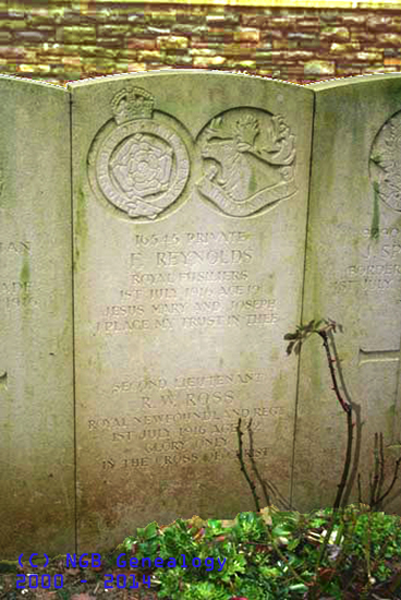 | Regt # 1182 2nd Lieutenant Robert Wallace Ross Royal Newfoundland Regiment 1st Jul 1916 Age 22 Glory Only In The Cross Of Christ |