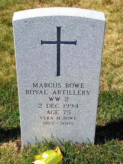 | Marcus Rowe Royal Artilllery WW II 2 Dec 1994 Age 75 Vera M. Rowe 1925-2005 |