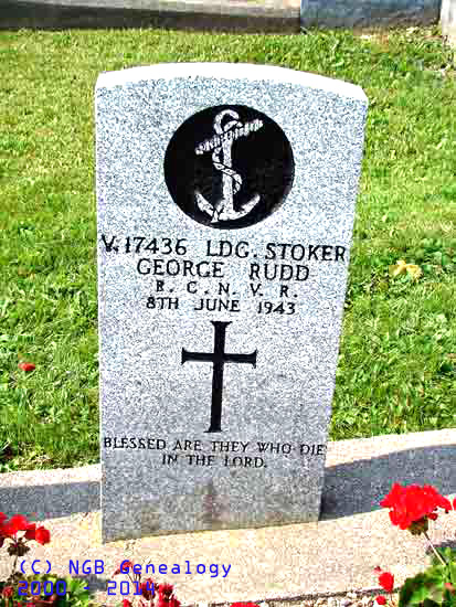 | V17436 George Rudd Leading Stoker. - R.C.N.V.R. 8 Jun 1943 Blessed Are They Who Die In The Lord |