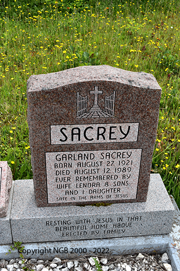 | LENORA SACREY Born: Dec 27, 1925 Died: Dec 6, 1990 GARLAND SACREY Born: Aug 27, 19211 Died: Aug 12, 1989 EUGENE SACREY Born: Aug 19, 1956 Died: Dec 23, 2001 |