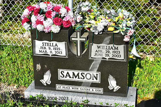 | STELLA SAMPSON Born: Feb 9, 1925 Died: March 11, 2013 WILLIAM SAMPSON Overseas Forestry Unit WW II Born: April 29, 1923 Died: June 29, 2003 |