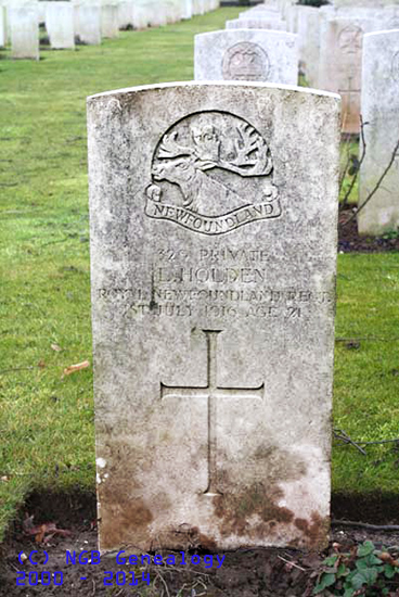 | Regt # 329 Pte Luke Holden Royal Newfoundland Regiment 1st Jul 1916 Age 21 [Note: this man is also on the Tablets to the missing] |