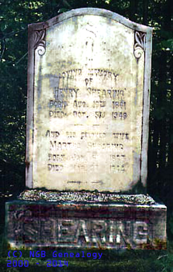 In Loving Memory of Henry Shearing Born Aug. 10th 1861 Died Oct. 5th 1948 And his beloved wife Martha Shearing Born Jan. 8th 1867 Died Mar. 27th 1944
