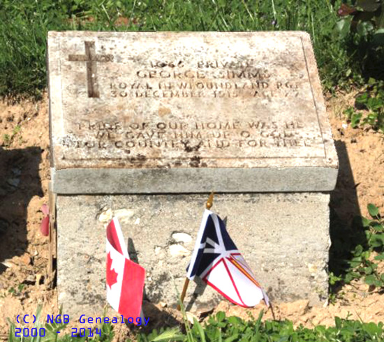 | 1066 Private George Simms Royal Newfoundland Regiment 30 Dec 1915 Age 27 ~ Pride Of Our Home Was He We Gave Him Up, O God For Country And For Thee |