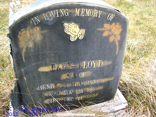 | BABY LLOYD SINNICKS Born: Nov 28, 1940 Died: Dec 11, 1940 Son of Henry & Ida Sinnicks |