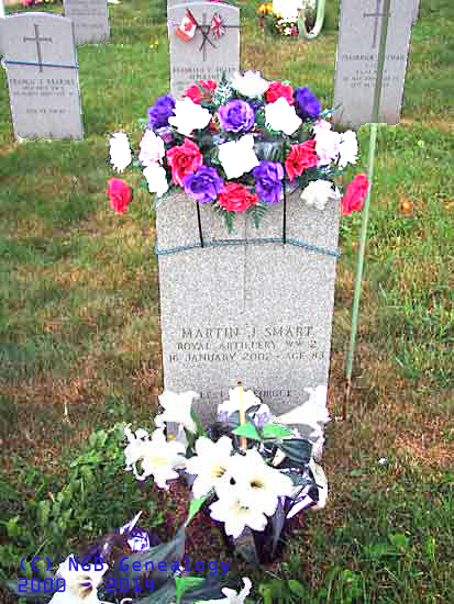 | Martin J. Smart Royal Artillery WW II 16 Jan 2002 Age 83 Lest We Forget |
