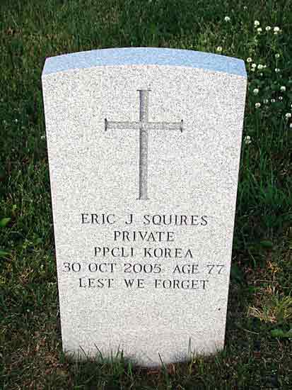 | Eric J. Squires Private - P.P.C.L.I. Korea 30 Oct 2005 Age 77 Lest We Forget |