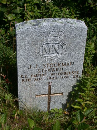 | J. J. Stockman Steward S.S. Empire Wildebeeste 8 Aug 1943 Age 23 |