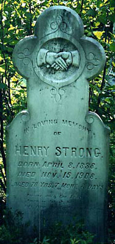 In loving memory of Henry Strong. Born April 8. 1838. Died Nov. 15. 1908. Aged 70 yrs. 7 mons 8 days Forever with the Lord Amen, so let it be Life from the dead is in that word Tis immortality