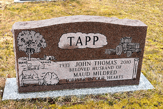 | JOHN THOMAS TAPP 1933 - 2010 MAUD MILDRED TAPP 1933 - 1984 JOHN T. TAPP JR. Born: April 10, 1963 Died: March 21, 2009 |