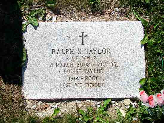 | Ralph S. Taylor Royal Air Force WW II 8 Mar 2002 Age 85 Louise Taylor 1914-2006 Lest We Forget |
