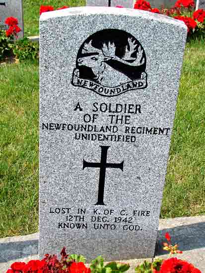Regiment Unidentified Lost In K. of C. Fire 12 Dec 1942 Known Unto God |