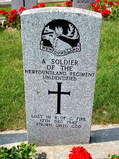 Regiment Unidentified Lost In K. of C. Fire 12 Dec 1942 Known Unto God |