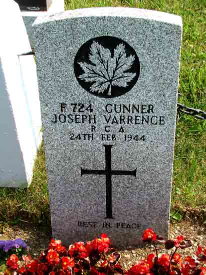 | F724 Joseph Varrence Gunner - R.C.A. 24 Feb 1944 Rest In Peace |