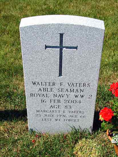 | Walter F. Vaters Able Seaman - Royal Navy WW II 16 Feb 2004 Age 83 Margaret E. Vaters 25 Jul 1996 Age 66 Lest We Forget |