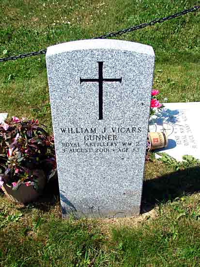 | William J. Vicars Gunner - Royal Artilllery WW II 3 Aug 2001 Age 83 |
