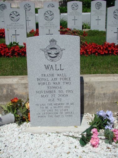 | Frank Wall Royal Air Force World War Two 339804 November 30, 1915 ~ May 27, 2008 Age 92 ~ I'd Like The Memory Of Me To Be A Happy One I'd Like To Leave An Afterglow of Smiles When The Day Is Done |