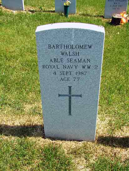 | Bartholomew Walsh Able Seaman - Royal Navy WW II 4 Sep 1987 Age 77 |