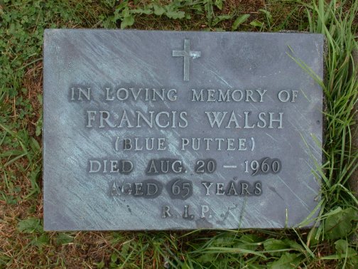 | Francis Walsh [Blue Puttee] WW I 20 Aug 1960 Age 65 |