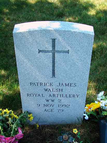 | Patrick James Walsh Royal Artillery WW II 9 Nov 1992 Age 79 |