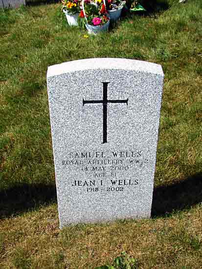 | Samuel Wells Royal Artillery WW II 14 May 2000 Age 81 Jean I. Wells 1918-2002 |