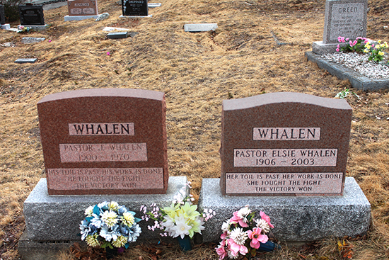 | PASTOR J. WHALEN 1900 - 1970 PASTOR ELSIE WHALEN 1906 - 2003 |
