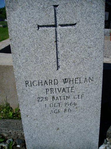 | Richard Whelan Private 228th Battalion Canadian Expeditionary Force 1 Oct 1966 Age 80 |