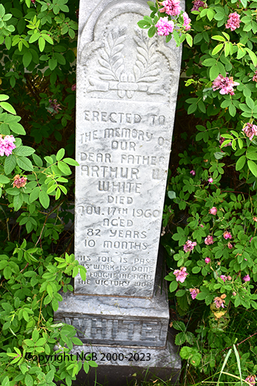 | ARTHUR WHITE Died: Nov 17, 1960 Aged: 82 Years 10 Months ETHEL A. WHITE Died: Dec 30th 1918 Aged: 5 Years 5 Months |