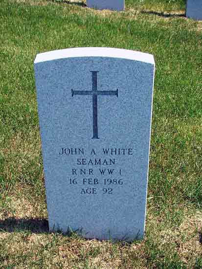 | John A. White Seaman - R.N.R. WW I 16 Feb 1986 Age 92 |