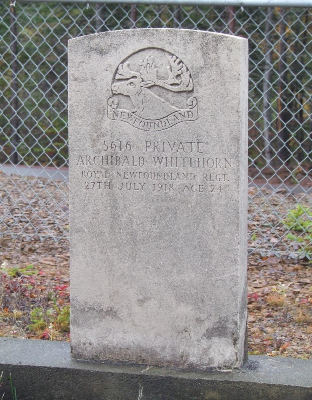 | 5616 Private Arcjobald Whitehorn Royal Newfoundland Regt 27th July 1918 - Age 24 ~ Lest We Forget |