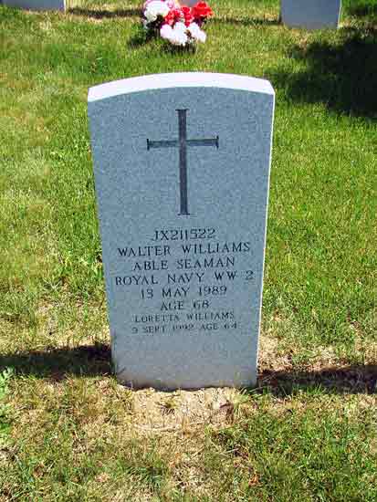 | JX211522 Walter Williams Able Seaman - Royal Navy WW II 19 May 1989 Age 68 Loretta Williams 9 Sep 1992 Age 64 |