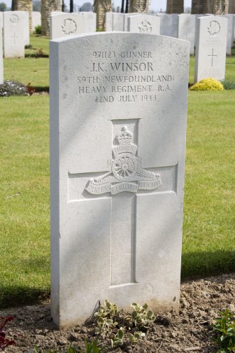 | 971123 Gunner J.K. Winsor 59th Newfoundland Heavy Regiment Royal Artillery 22nd July 1944 |
