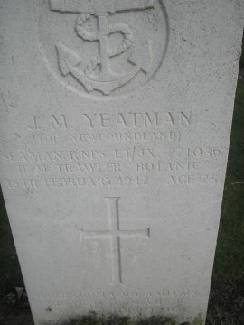 | James M. Yeatman Of Newfoundland Seaman ~ R.N.P.S. Lt/ JX 221036 H.M. Trawler, Botanic 18 Feb 1942 Age 25 |