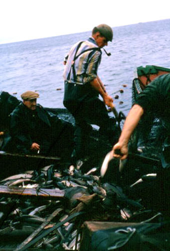 "The Phonse Kavanagh crew of Ferryland, visiting the traps off Isle au Bois in 1969. A sad reminder of better times in the east coast fishery." Reproduced here with the permission of Chris Morry |